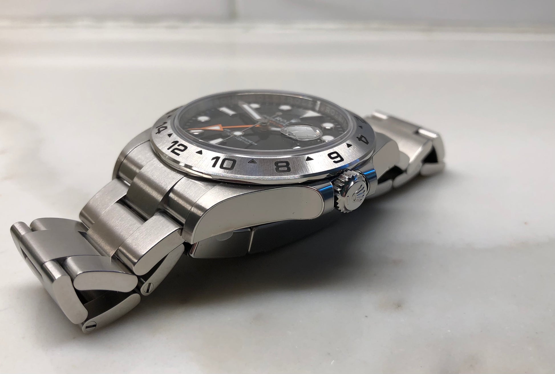 - Dial: Swiss Made Signed Black Dial w/ GMT, Date Function, and Luminescent Hands & Hour Plots