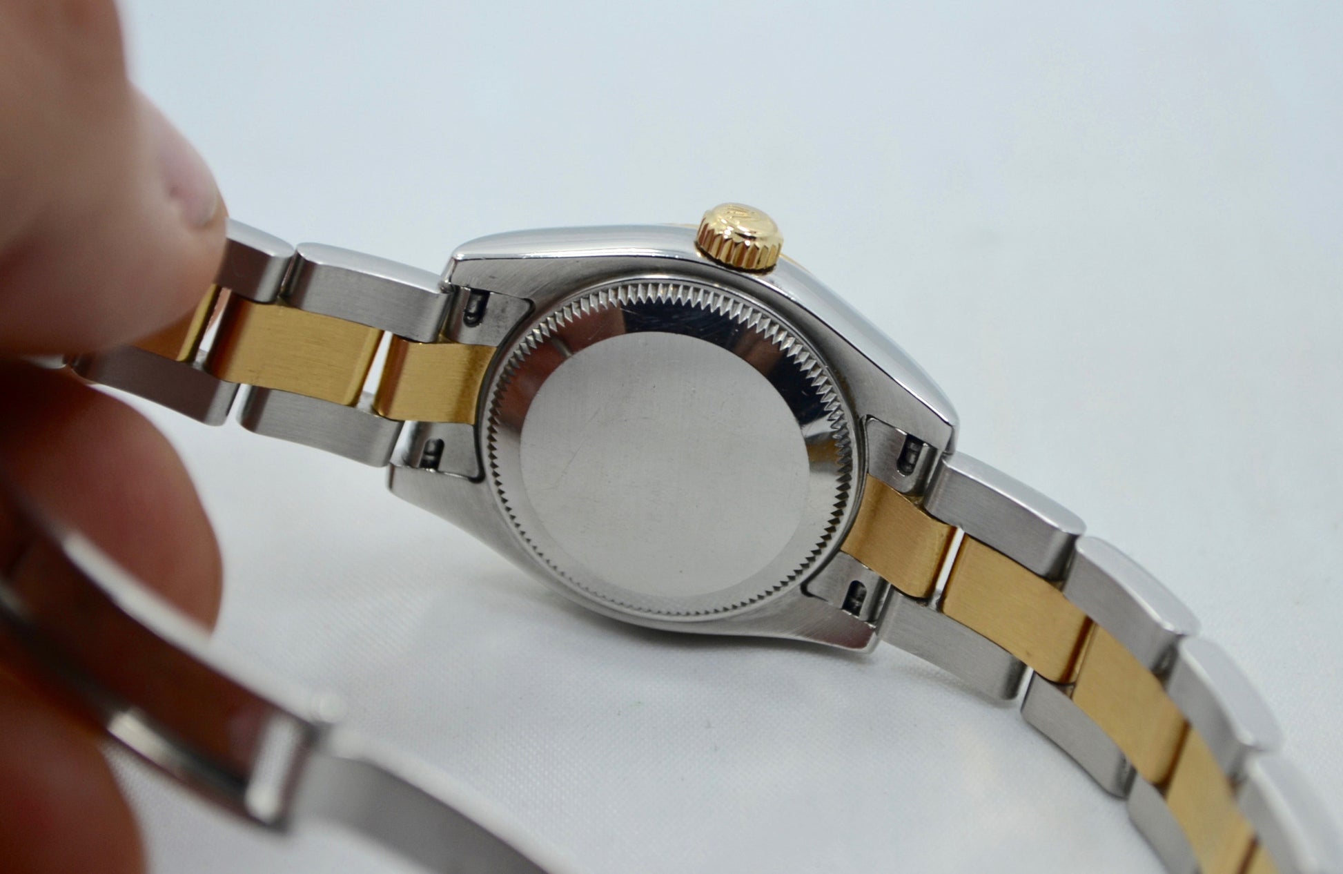 Up for your consideration is this Rolex 179163 Datejust Two Tone Ladies Oyster Steel Gold Roman Wristwatch. All functions work and the watch is keeping accurate time. The watch comes with box and papers; all you see in the photos. The bracelet will accommodate a 6.25" wrist comfortably.