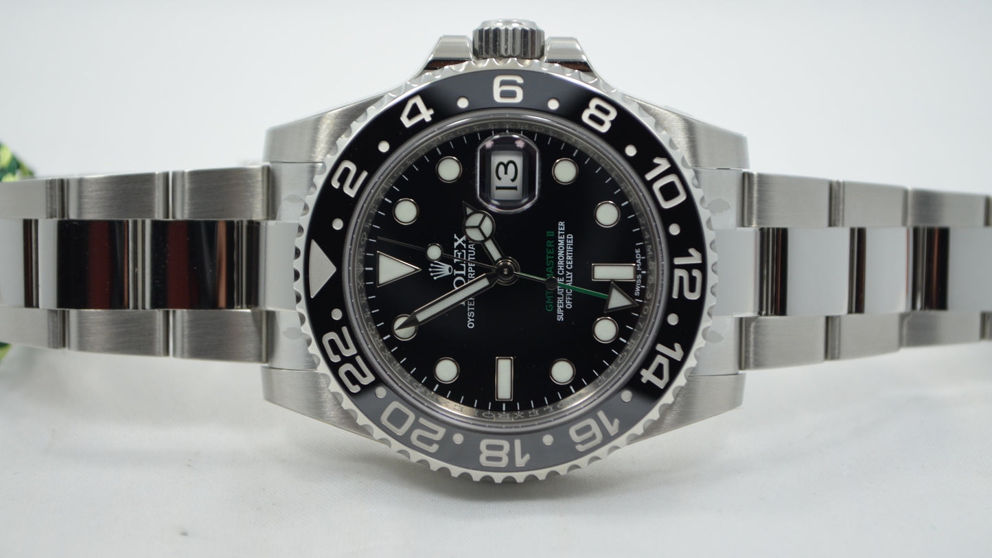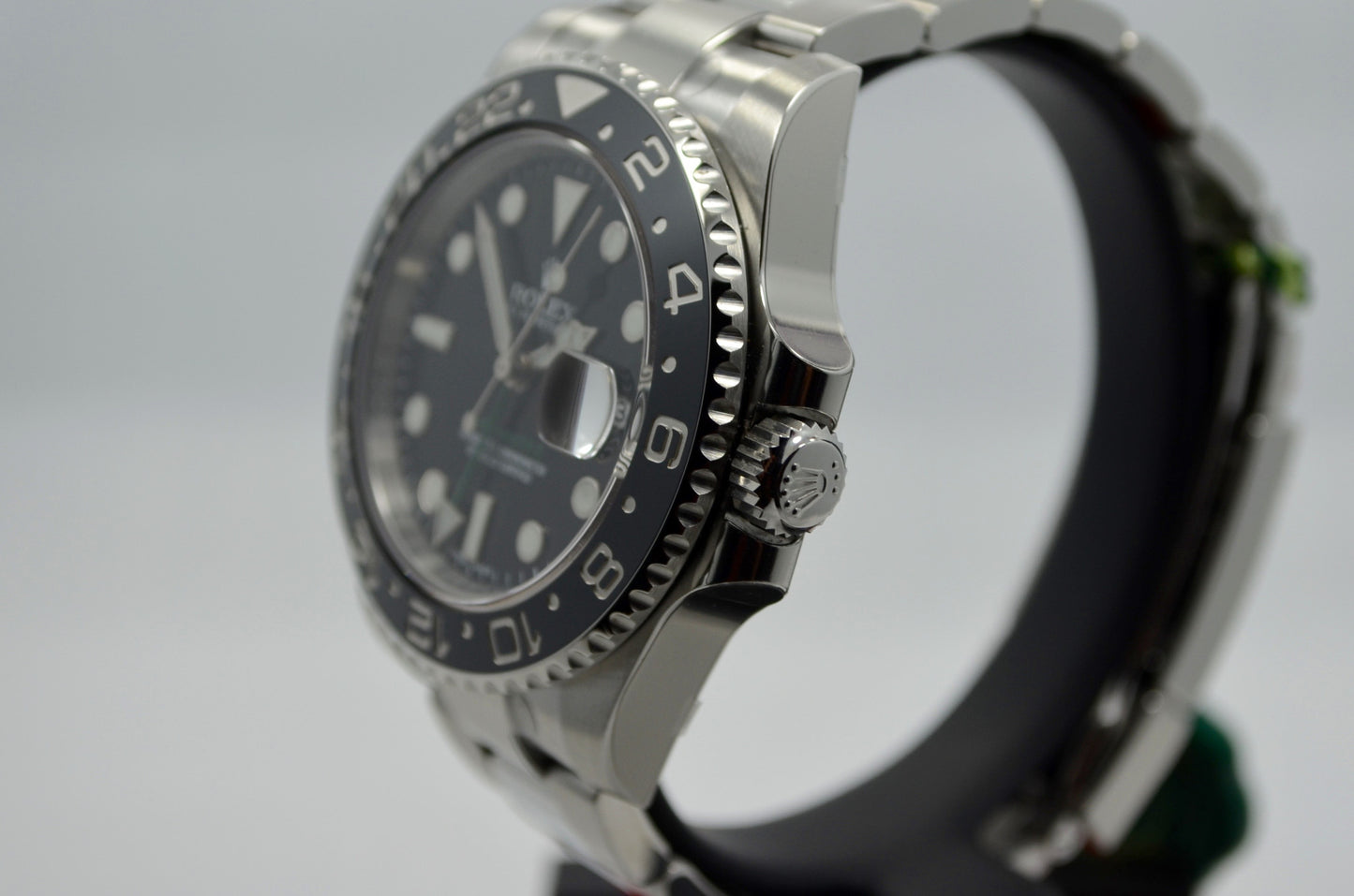 - Dial: Rolex Swiss Black Dial with GMT, Date Functions