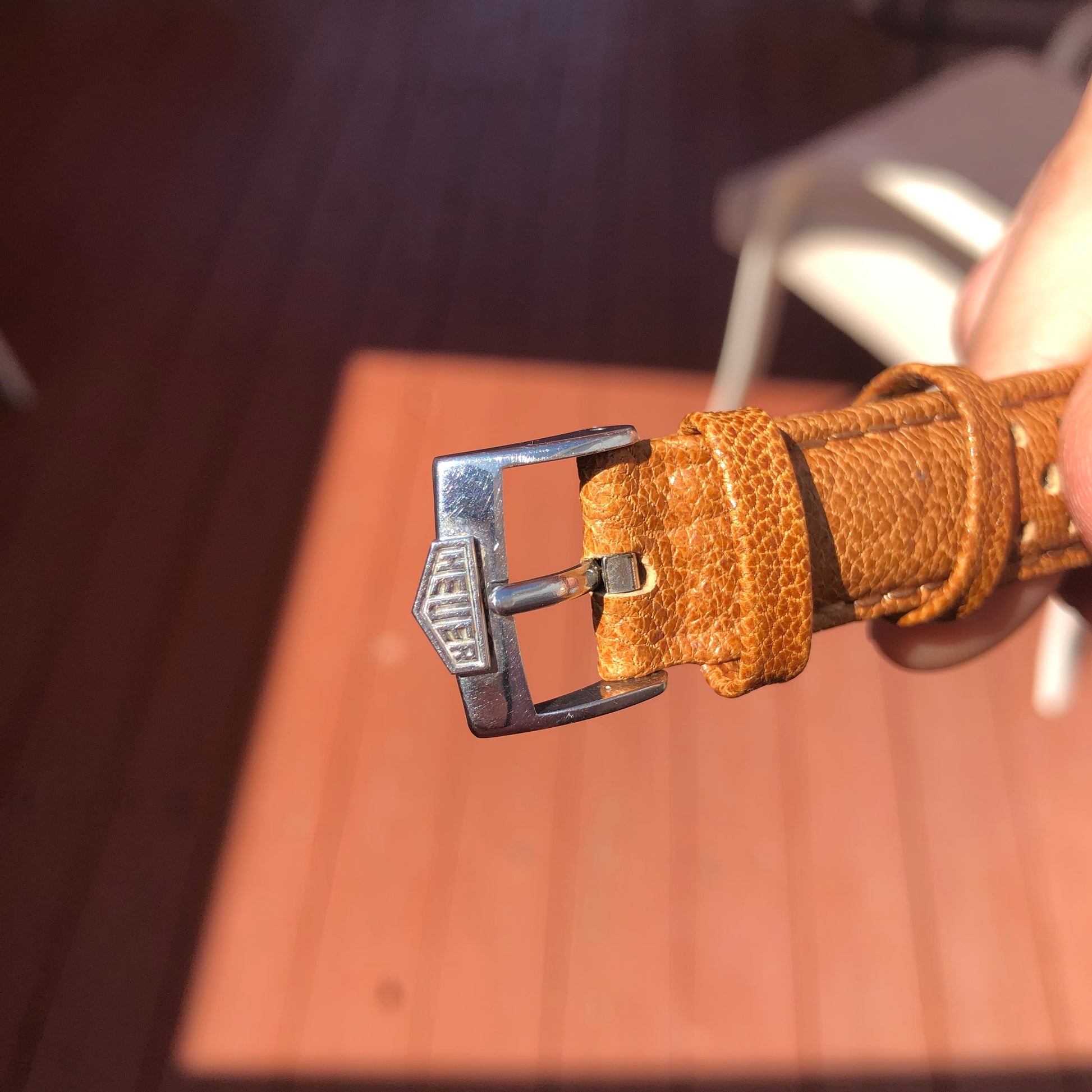- Strap: High Grade Light Brown Leather Strap w/ Heuer Tang Buckle
