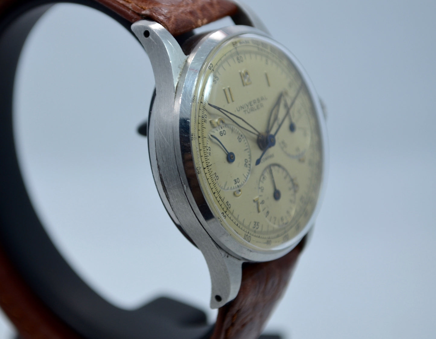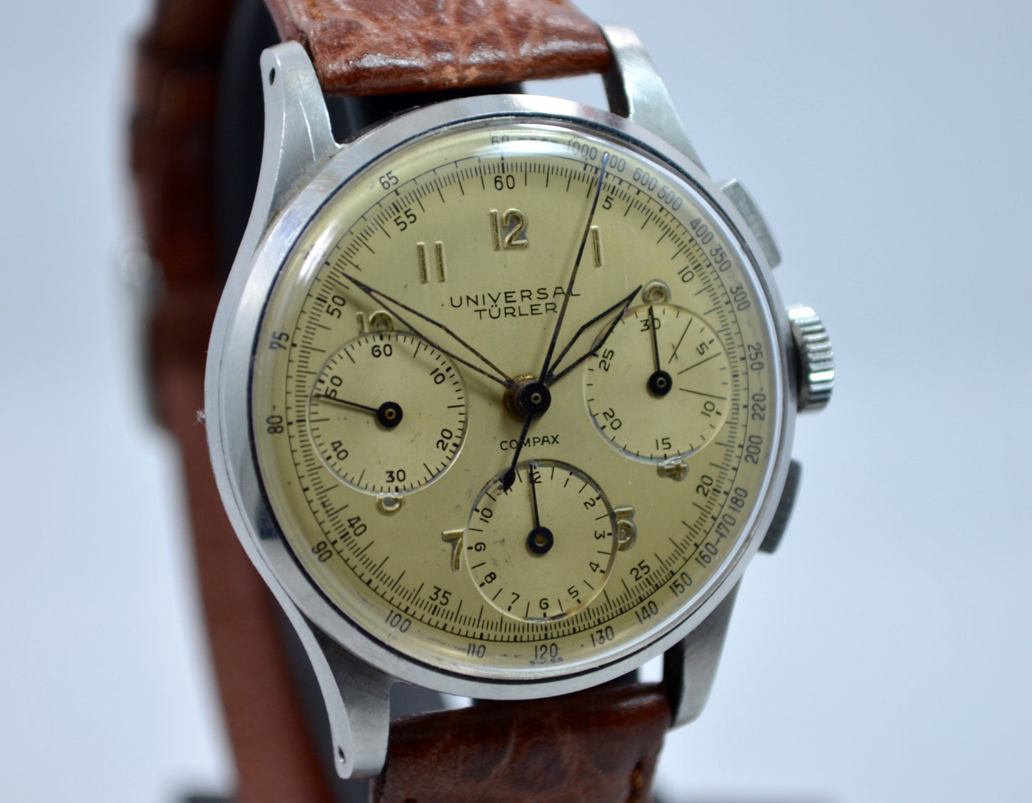 Vintage Universal Geneve Compax Türler Signed Steel Chronograph Cal. 285 Wristwatch 1950's
